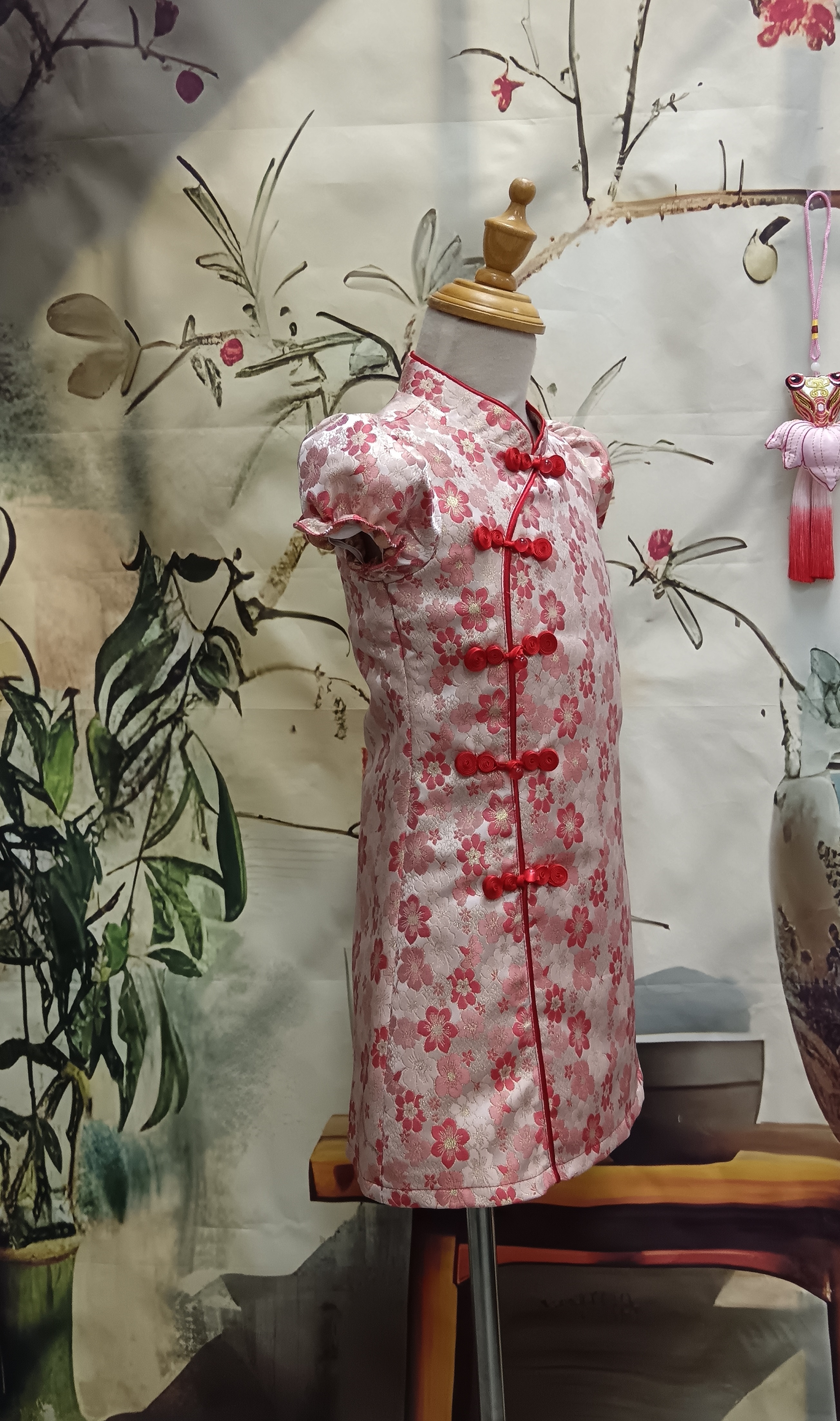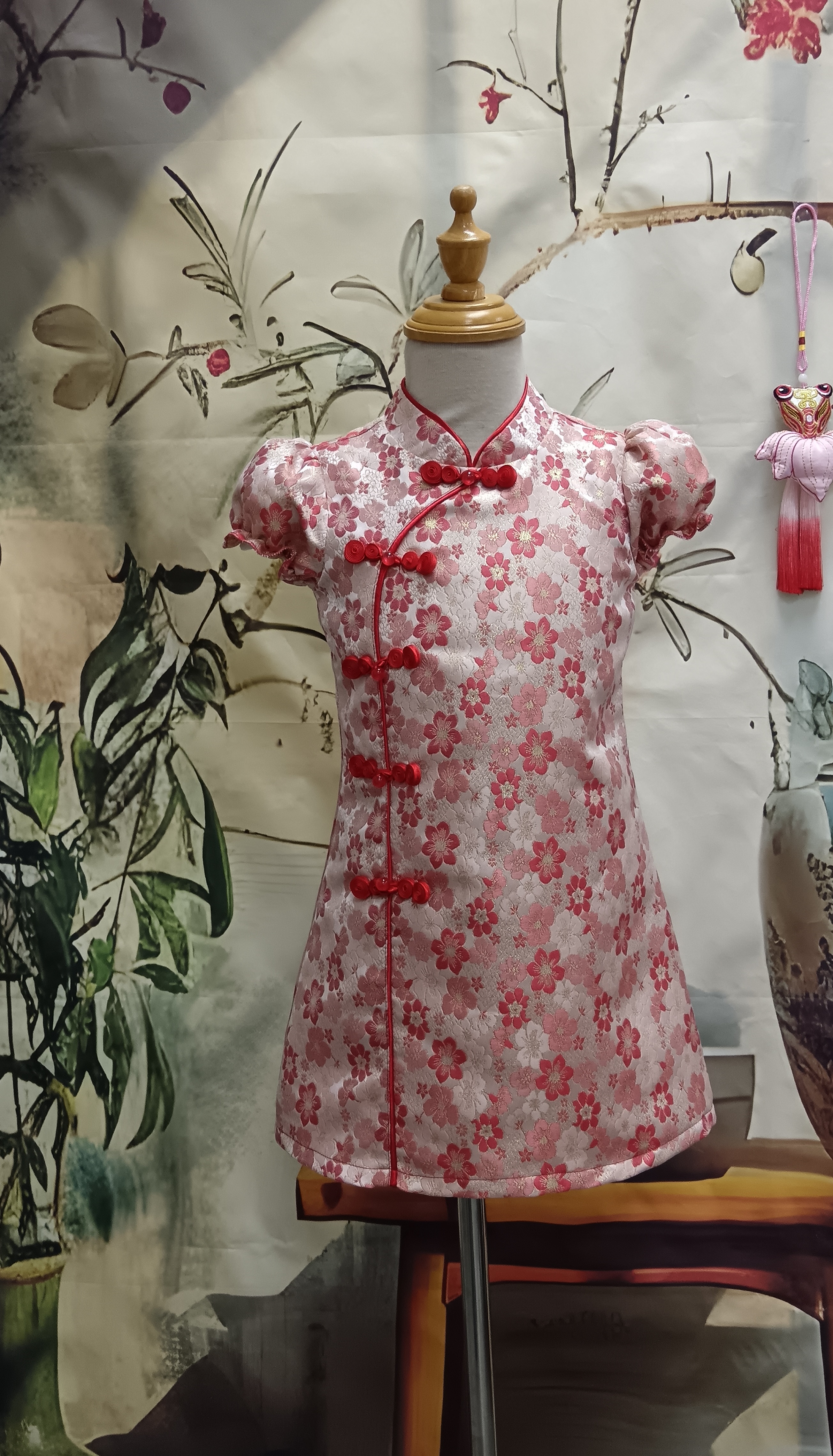 Elegant Qipao with Sakura Embroidered design Suitable for Age 4Y - 12Y Girls Featuring intricate floral that radiate charm Occasion: Chinese New Year  , Wedding, Photo Shoot, Formal Event or Any Dressy Occasion Note : Kindly be reminded that due to lighting effects, monitor's brightness/contrast setting etc, there could be some slight differences in the color tone of the photo and actual item.