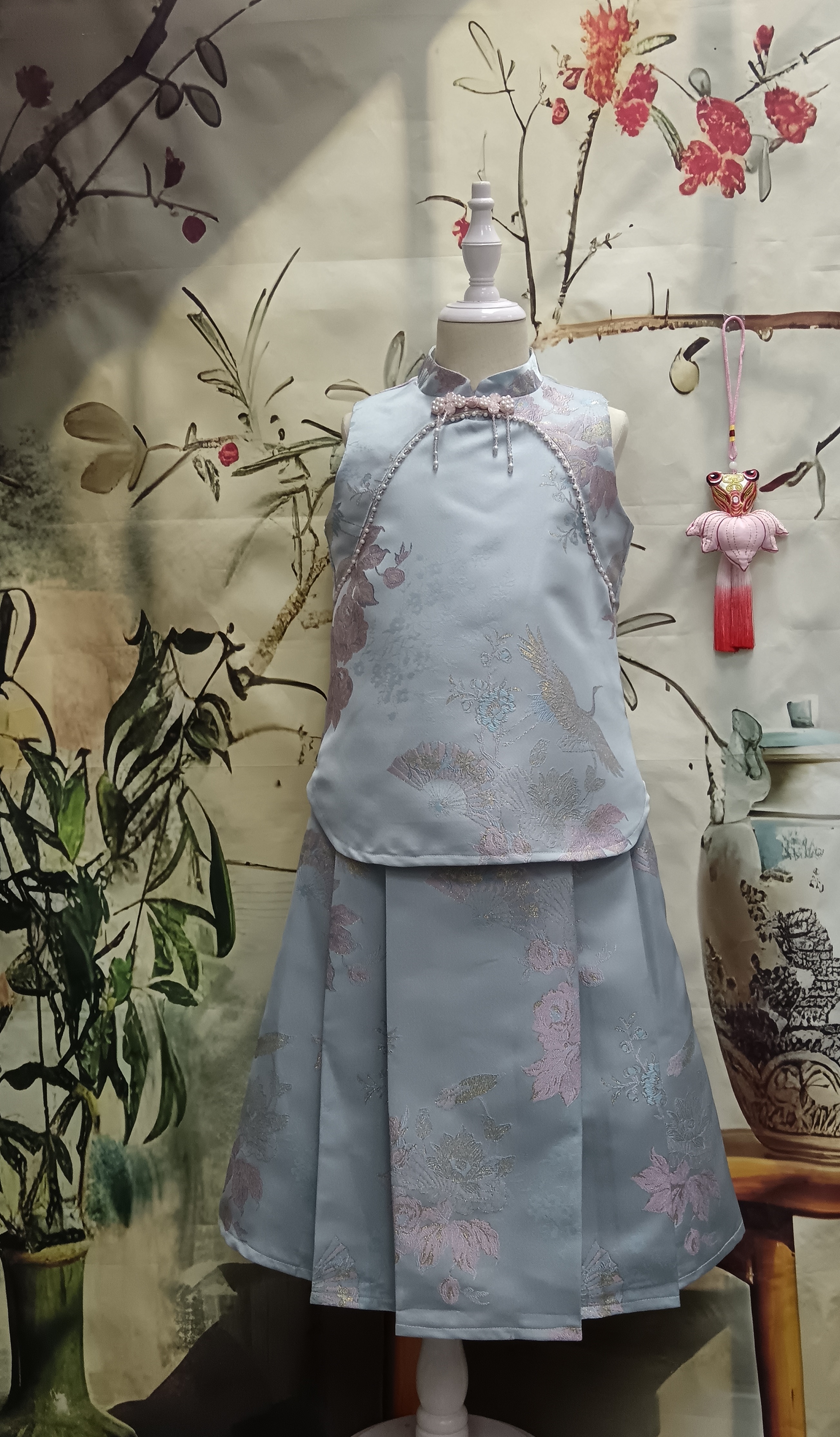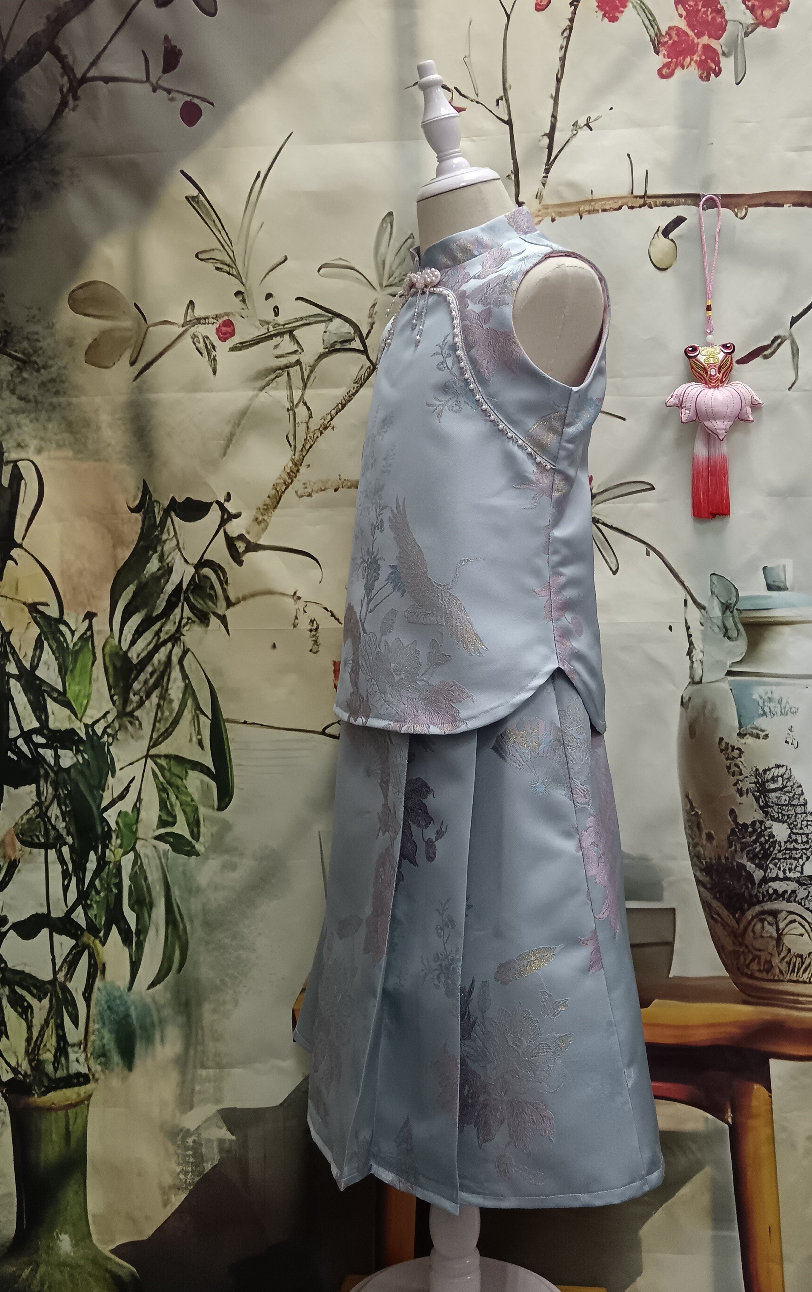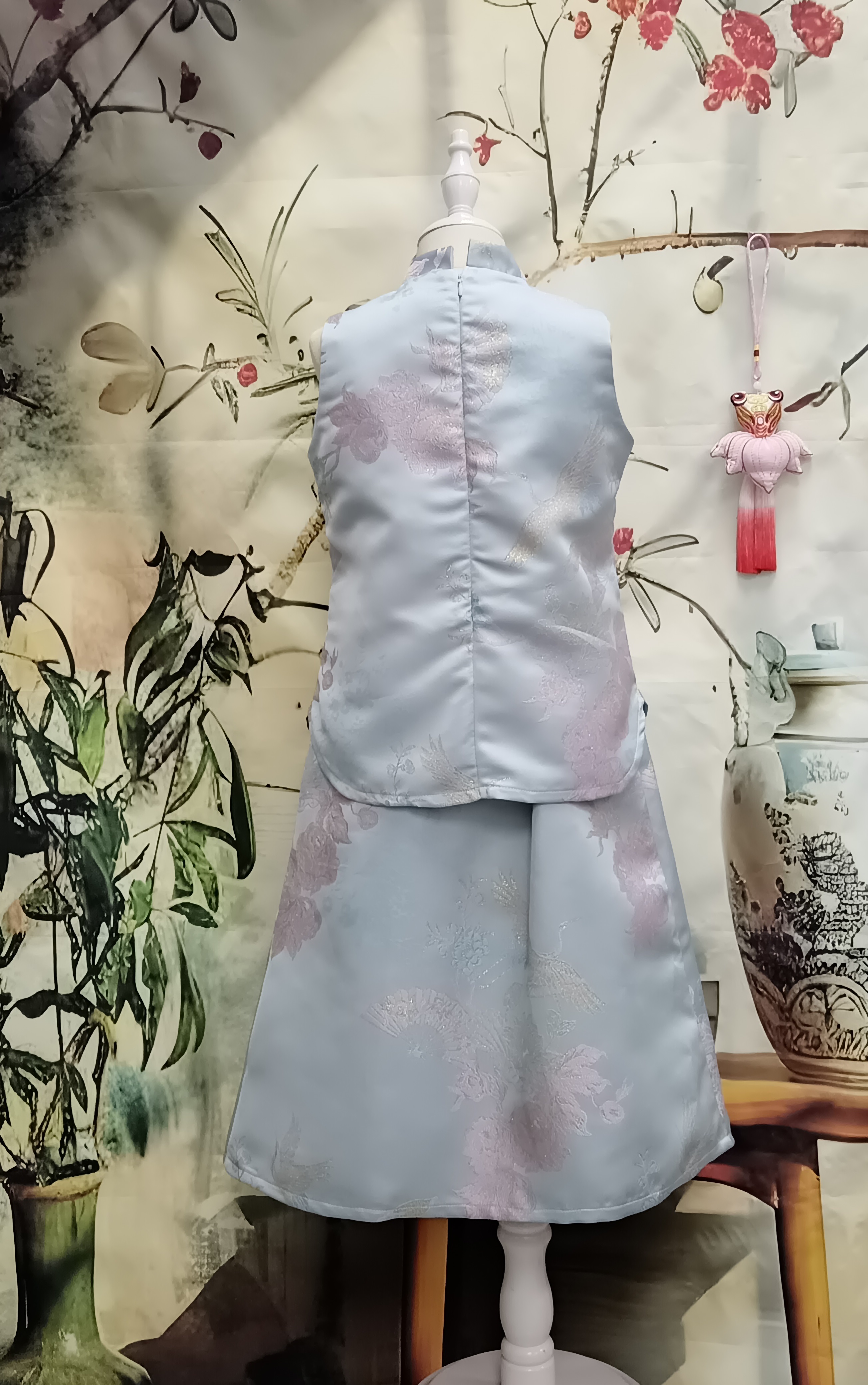 Elegant Cheongsam Top and Skirt with Floral Embroidered design Suitable for Age 6Y - 12Y Girls Featuring intricate floral that radiate charm Occasion: Chinese New Year  , Wedding, Photo Shoot, Formal Event or Any Dressy Occasion Note : Kindly be reminded that due to lighting effects, monitor's brightness/contrast setting etc, there could be some slight differences in the color tone of the photo and actual item.