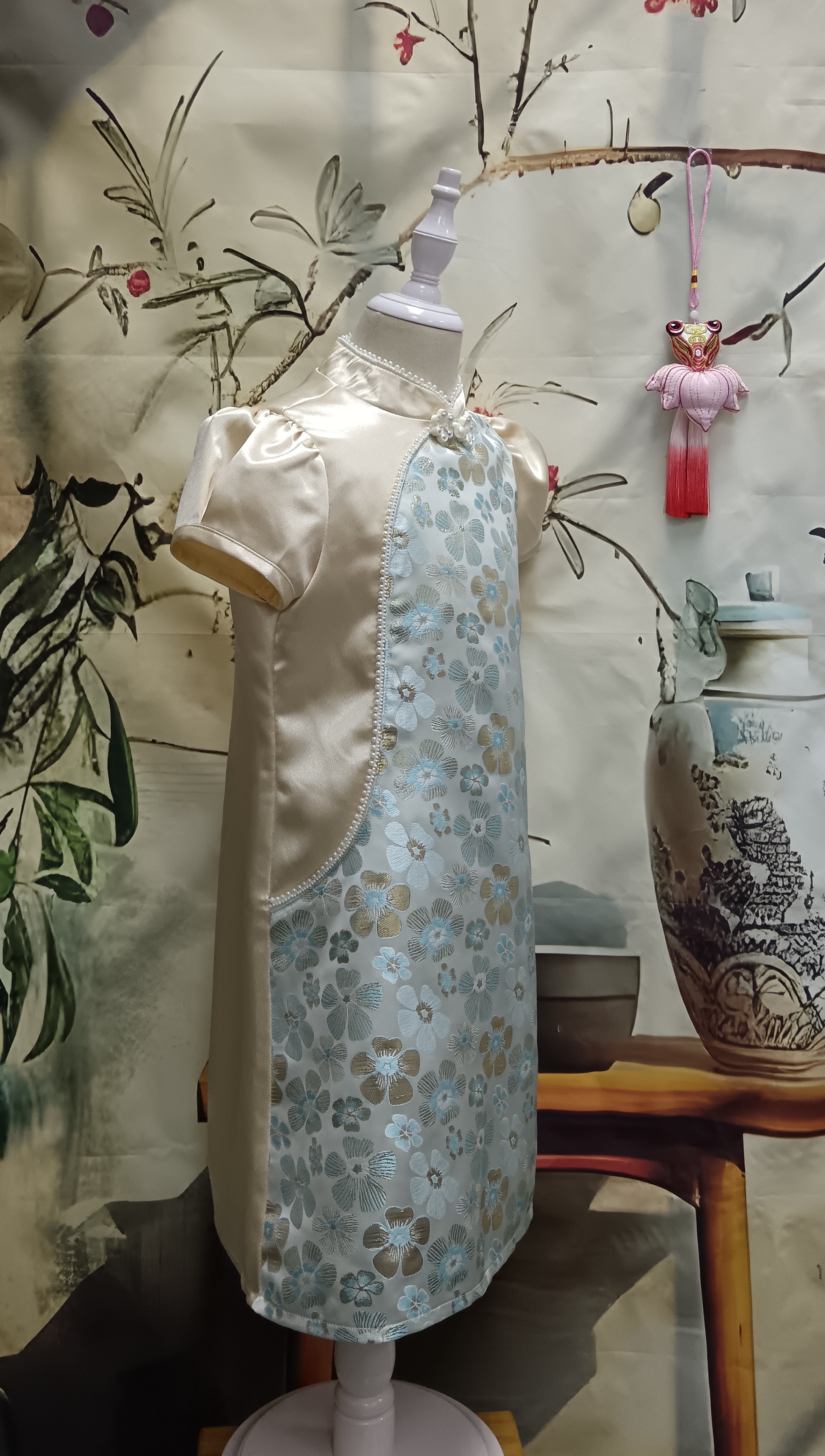 Elegant Qipao with Sakura Embroidered design Suitable for Age 4Y - 14Y Girls Featuring intricate floral that radiate charm Occasion: Chinese New Year  , Wedding, Photo Shoot, Formal Event or Any Dressy Occasion Note : Kindly be reminded that due to lighting effects, monitor's brightness/contrast setting etc, there could be some slight differences in the color tone of the photo and actual item.