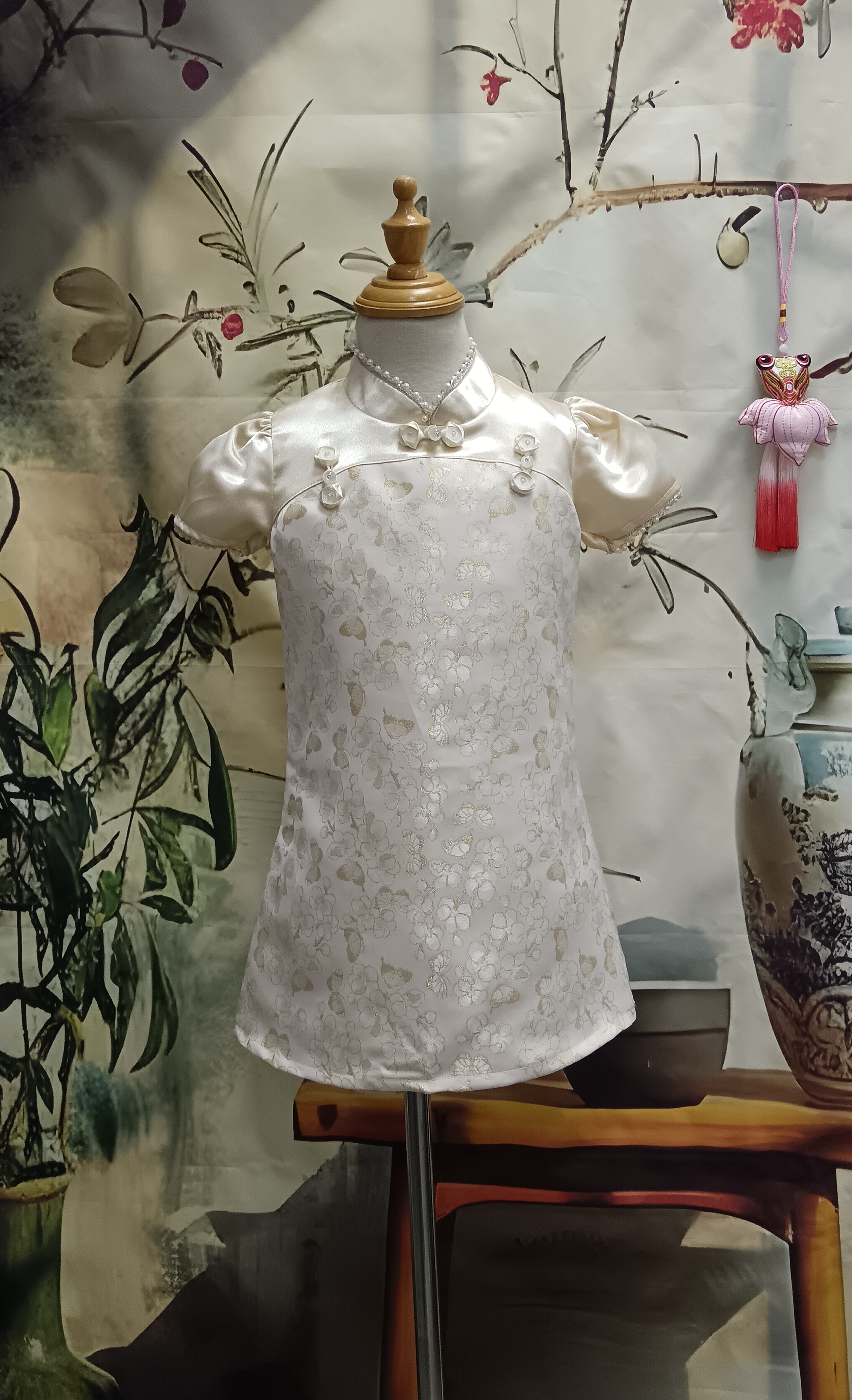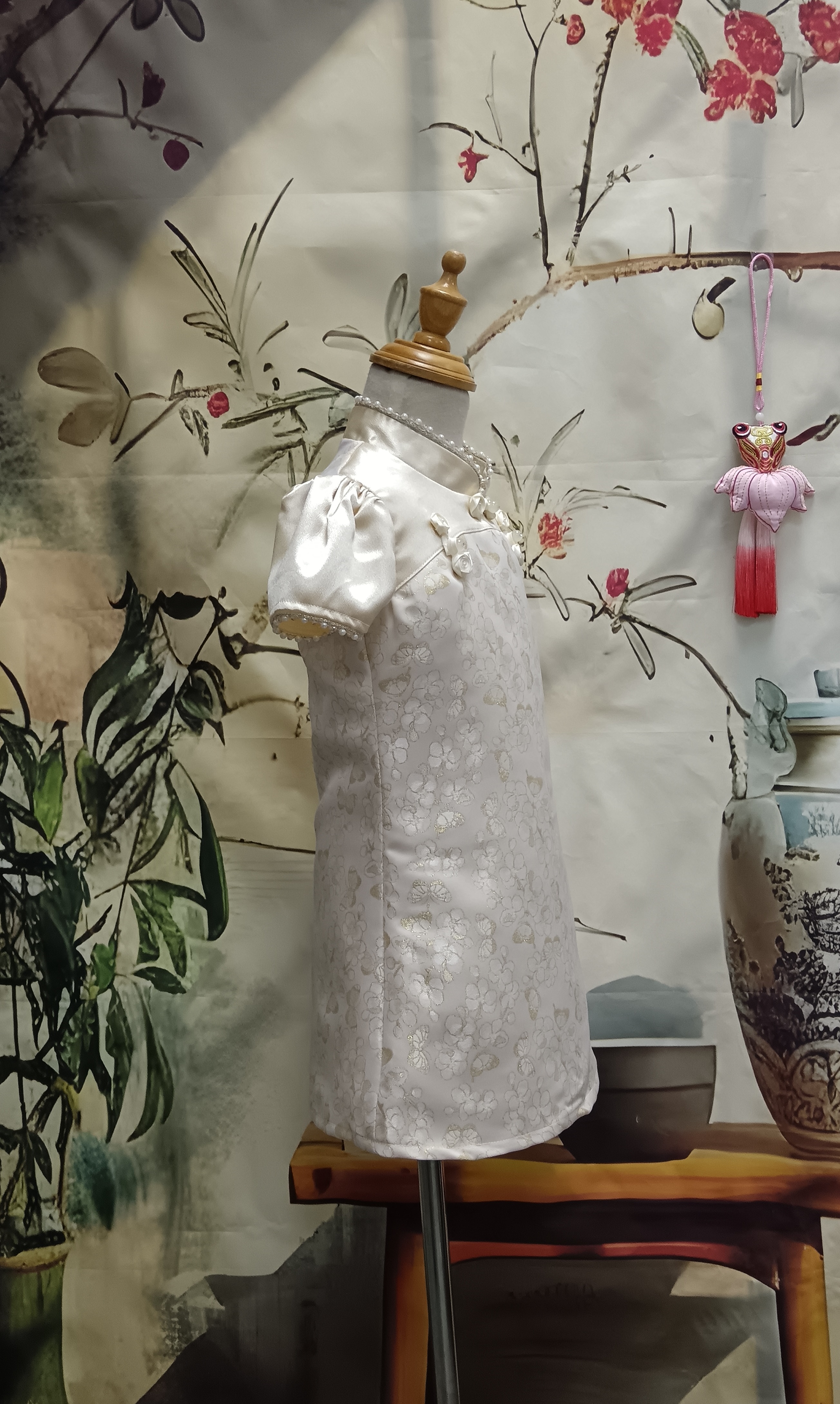 Elegant Qipao with Sakura Embroidered design Suitable for Age 4Y - 14Y Girls Featuring intricate floral that radiate charm Occasion: Chinese New Year  , Wedding, Photo Shoot, Formal Event or Any Dressy Occasion Note : Kindly be reminded that due to lighting effects, monitor's brightness/contrast setting etc, there could be some slight differences in the color tone of the photo and actual item.